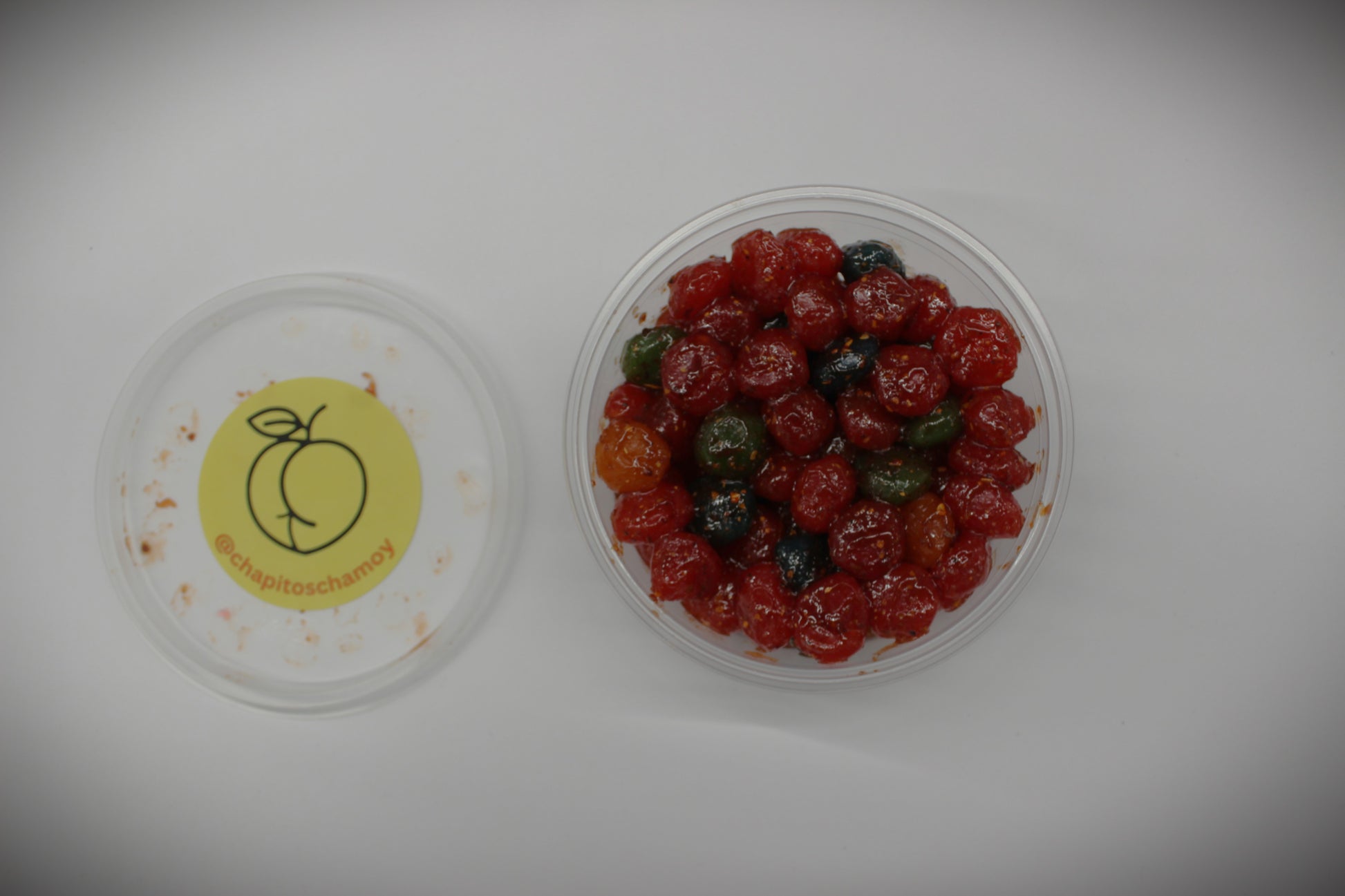 Experience the bold, tangy flavor of Chapitos Chamoy, where the traditional taste of homemade chamoy meets a modern twist. Our signature chamoy sauce is carefully crafted using a blend of zesty fruits, spices, and a hint of sweetness, creating the perfect balance of savory and spicy. What makes it truly unique? We've infused it with the juicy burst of Gusherz, adding a fun, fruity explosion in every bite.